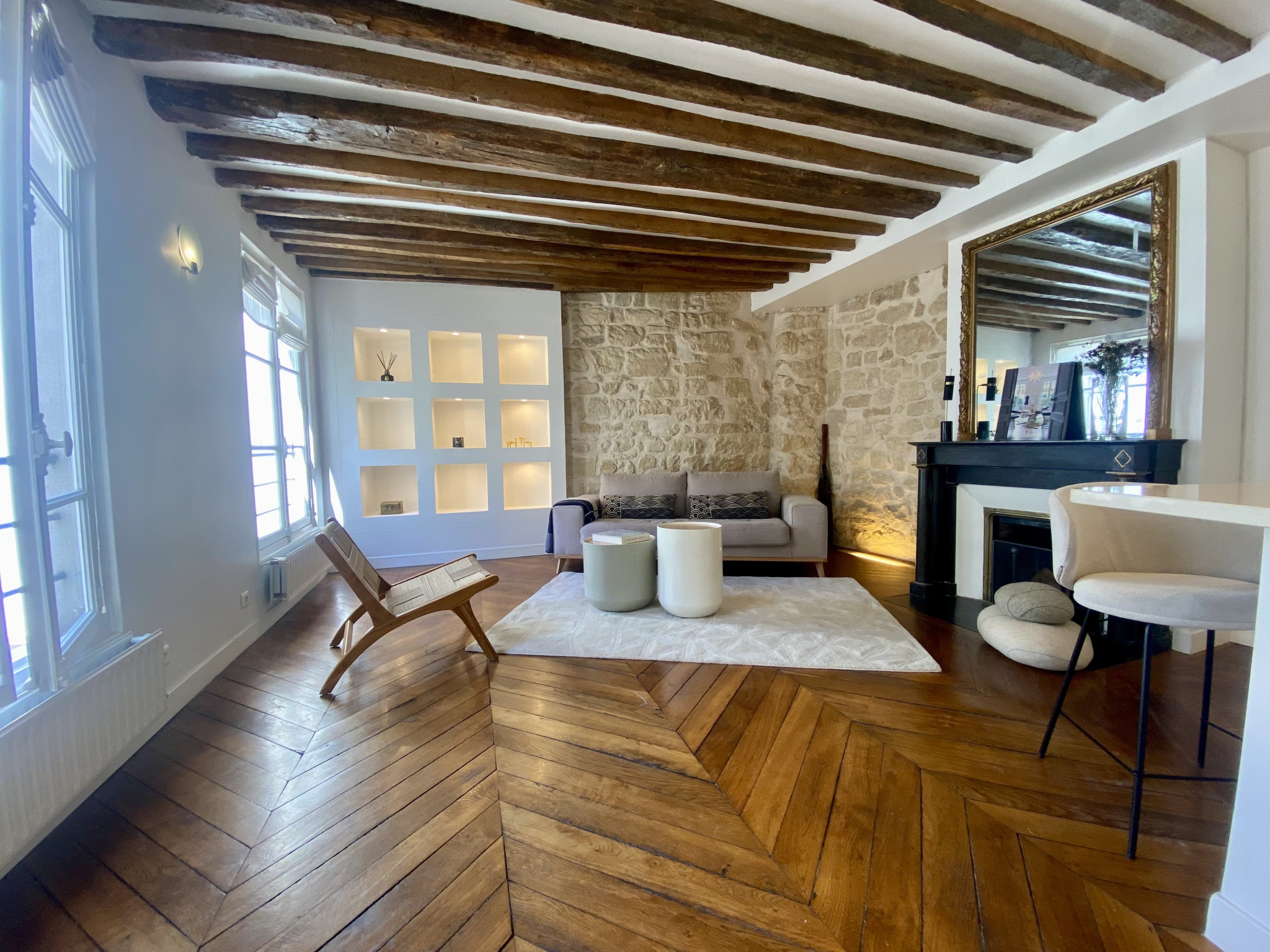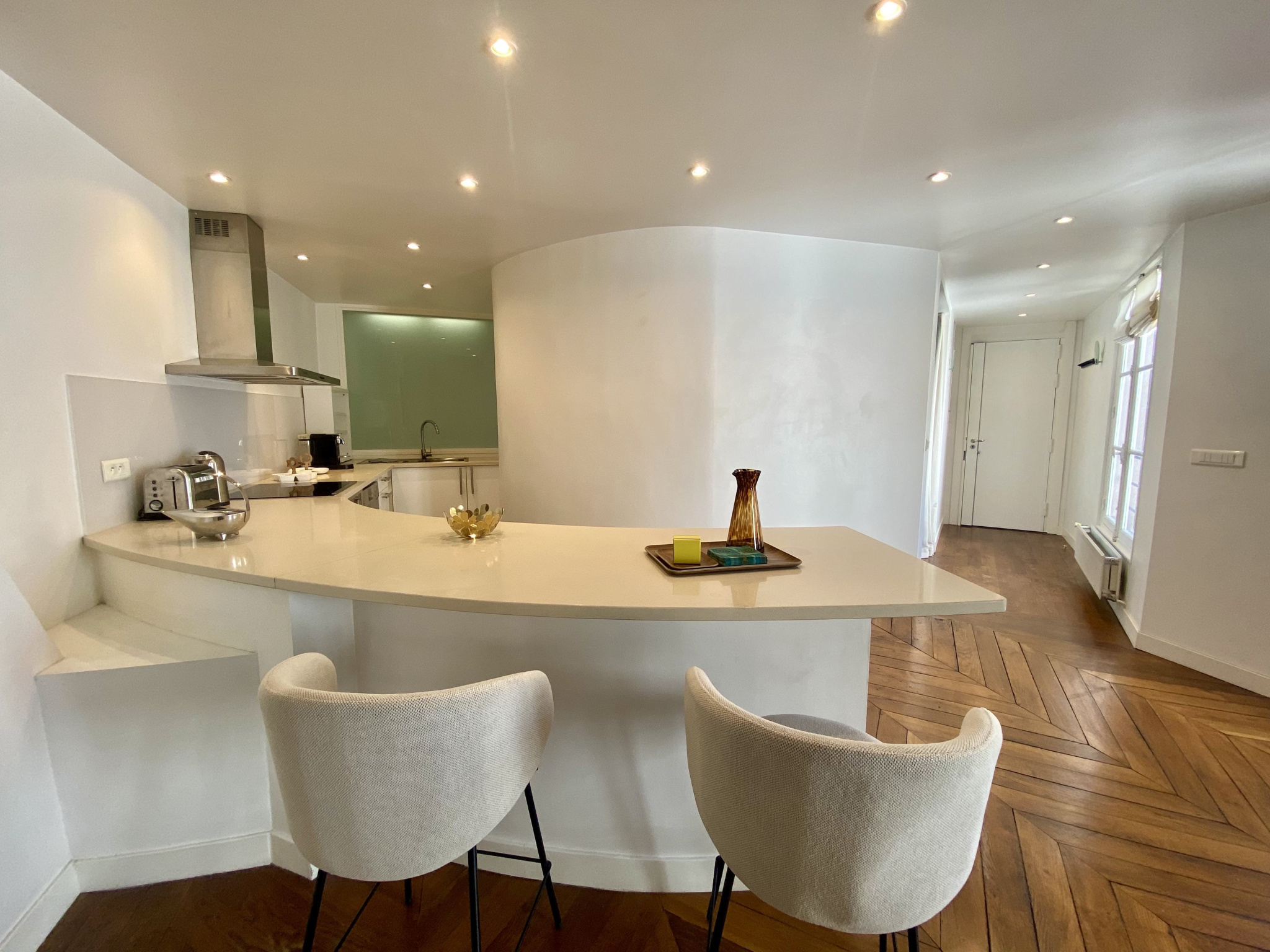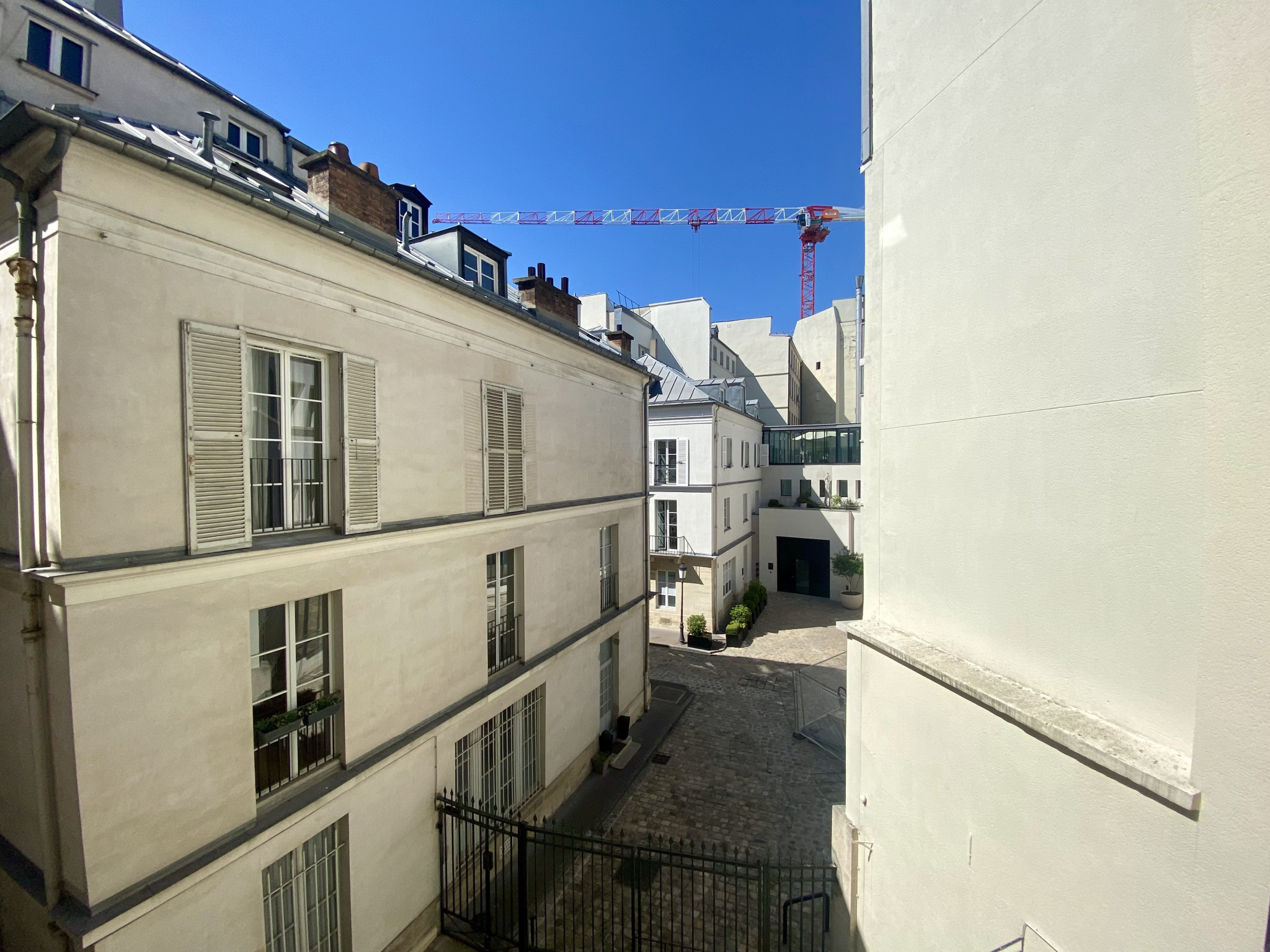 Quartier Saint Honoré / Madeleine. Au sein d'une cour classée, et sécurisée 24/24, beau 2P typiquement parisien situé au 2ème étage d'un immeuble ancien. Il se compose d'une entrée, chambre avec salle de bains, wc séparés, salon avec cuisine US équipée. Poutres, cheminée et parquet. Cour très calme et accès sécurisé. Disponibilité immédiate.Bail résidence secondaire ou bail code civil.Honoraire d'agence : 10% HT du loyer annuel